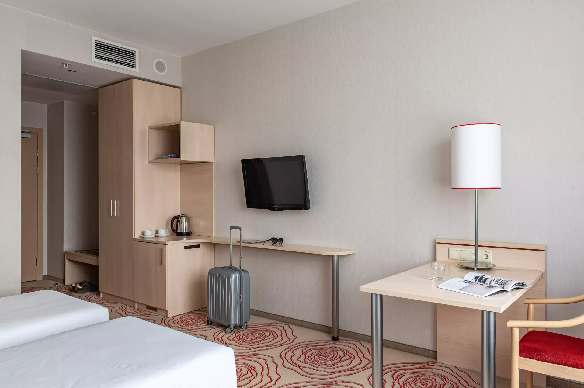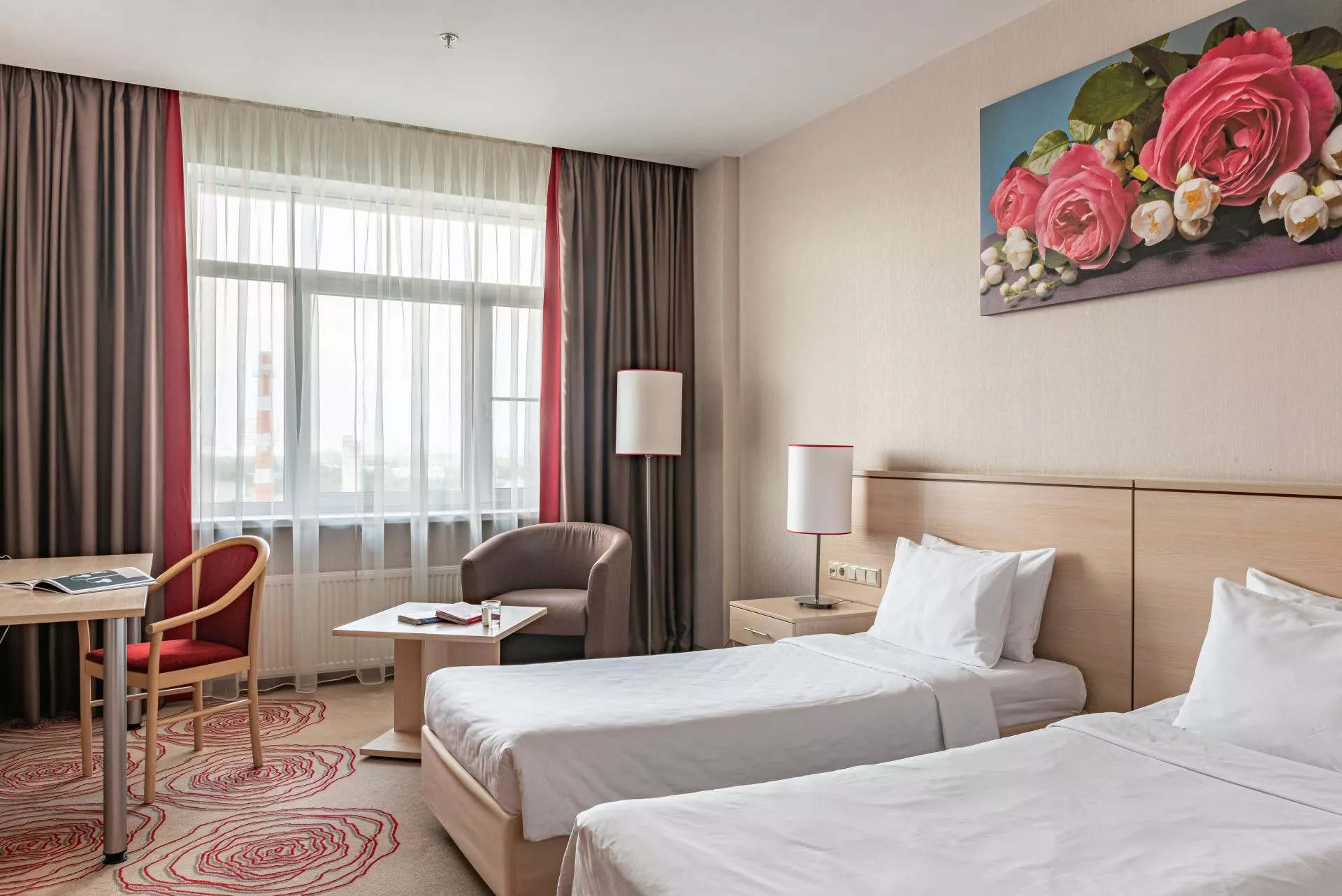 В номере было чисто и уютно, в коридорах также. Вежливый персонал, вкусная еда в ресторане, рядом есть магазинчики и заведения, в которых можно поесть. Также хочется отметить интерьер, стильно и современно.